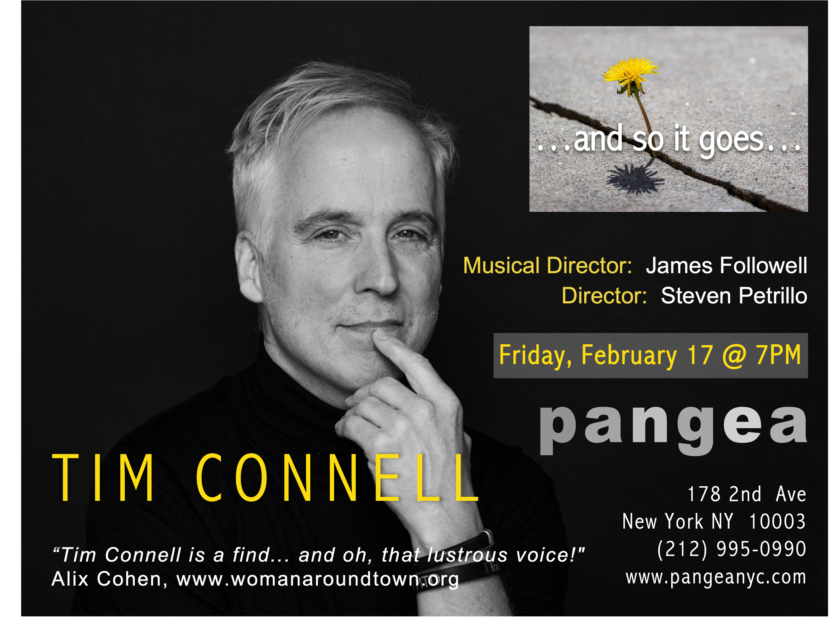 Bart Greenberg, of www.cabaretscenes.org, had this to say about the show: “The fine troubadour Tim Connell returned to Pangea for his third new show of the year. The fact that the room was packed with fans says a great deal about his talent and his warmth. Once again, he used his polished tenor and his fine enunciation plus his ability to find interesting songs that are not part of the usual cabaret catalog to build an interesting and entertaining evening.