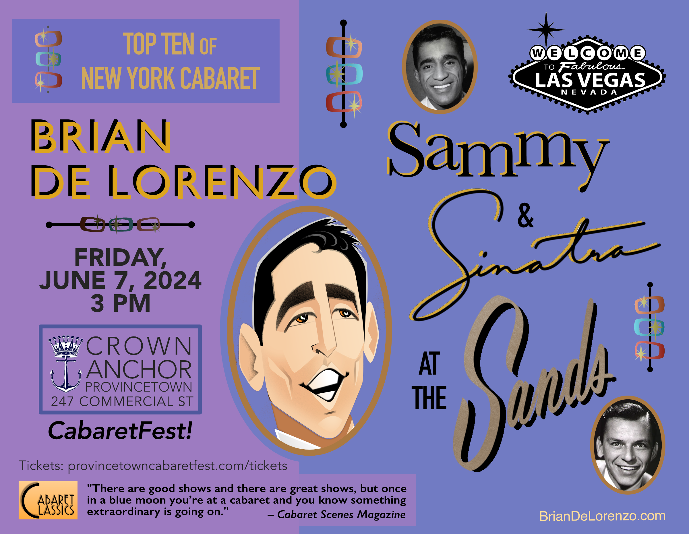 “Top-Ten of New York Cabaret” and Talent America “Performer of the Year” Brian De Lorenzo brings his award-winning vocals in celebration of two iconic performers of the 20th century who performed at one of the icons of mid-century Las Vegas – the Copa Room at the Sands Hotel and Casino. Accompanied by Tom LaMark on piano.