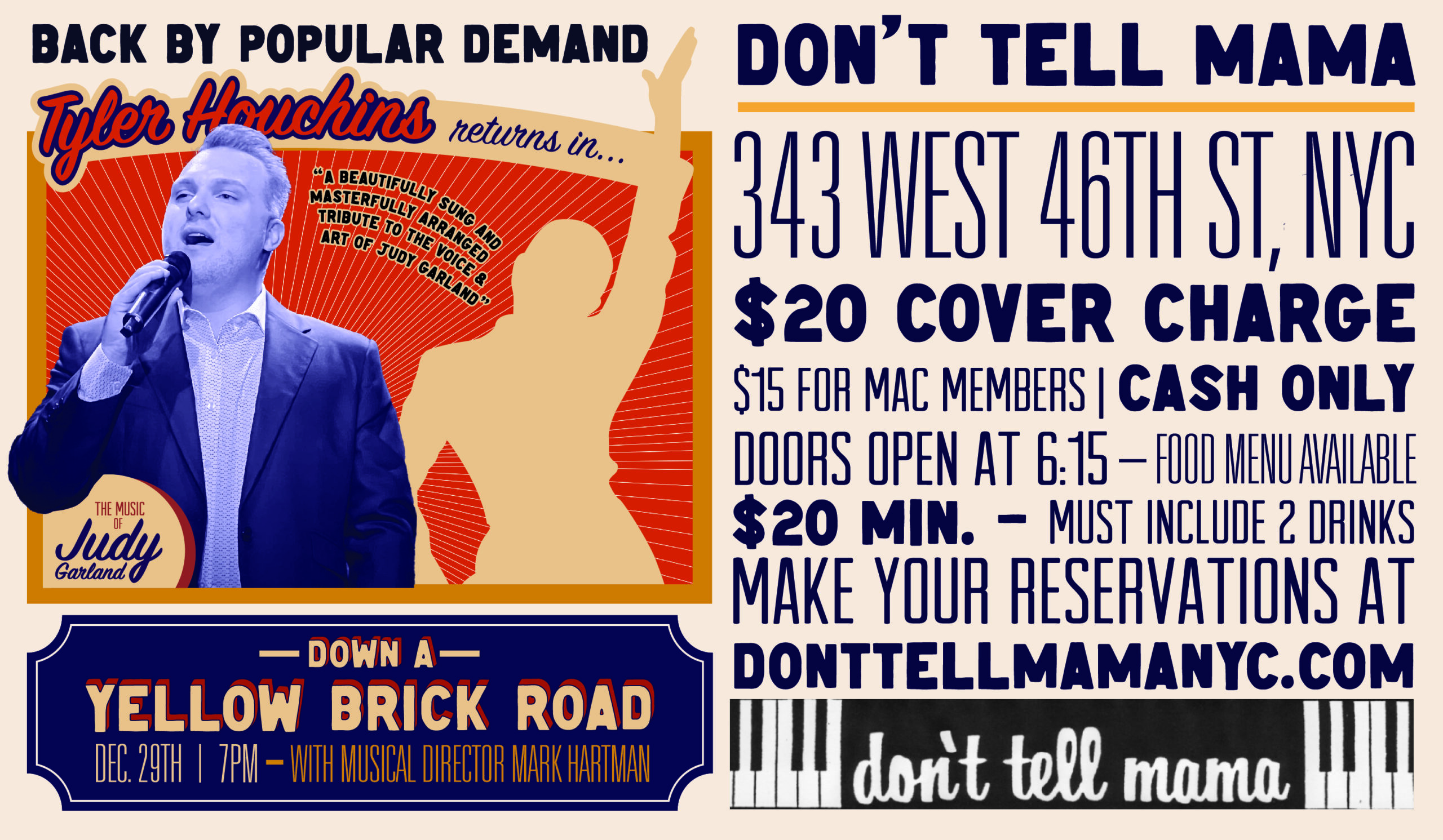 CABARET ARTIST, TYLER HOUCHINS, REPRISES HIS HIT PERFORMANCE DOWN A YELLOW BRICK ROAD IN HONOR OF THE LEGENDARY JUDY GARLAND.