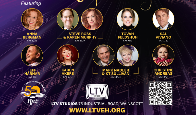 LTV Studios launches the 2024 season of their new musical concert series Hamptons Summer Songbook by the Sea, produced by Donna Rubin and LTV’s Creative Director Josh Gladstone. This summer’s schedule stars Anna Bergman, Steve Ross and Karen Murphy, Tovah Feldshuh, Sal Viviano, Jeff Harnar, Karen Akers, Mark Nadler and KT Sullivan, and Christine Andreas.
