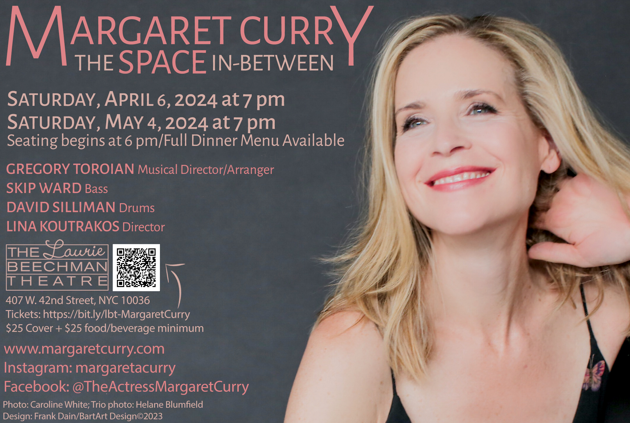 MARGARET CURRY returns for encore performances of THE SPACE IN-BETWEEN, originally performed at Laurie Beechman Theatre on November 30, 2023. Through story and song, Curry explores, stimulates, and delights in the universe between the present and the future, the good and the bad, hope and what’s-to-come. Always seeking to dive and dig deep into all things human, ever-curious about why we do what we do, she strives to remind and cajole herself and her audiences to fly higher.