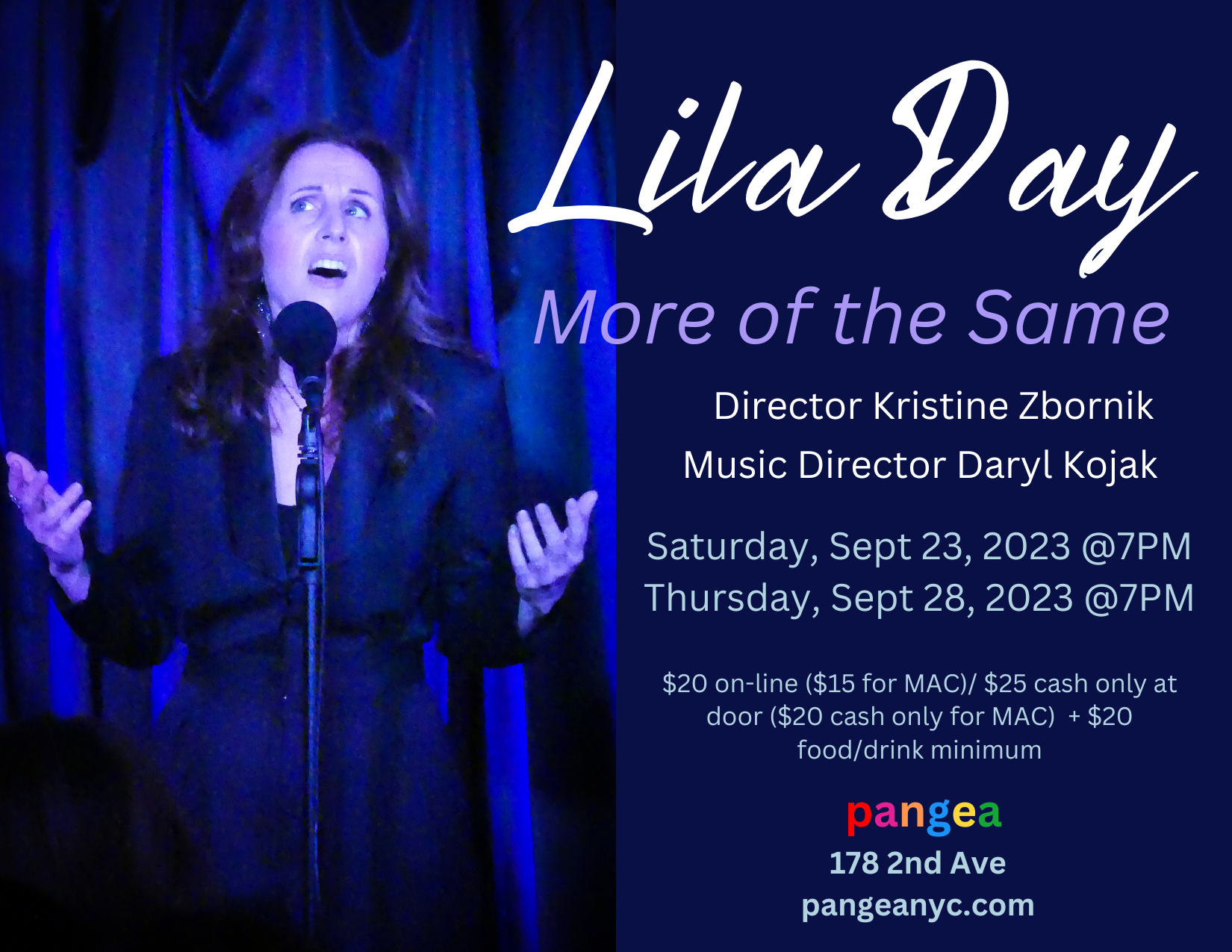 MACNYC members: $15 in advance on-line ($20 cash only at door) + $20 Food/Drink Minimum