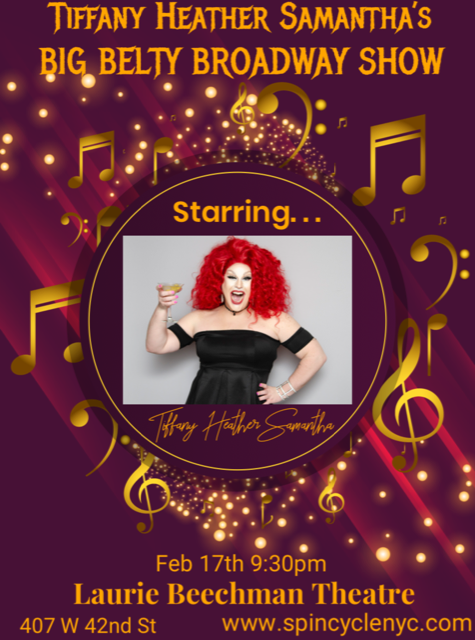Queen of the Universe, step aside! Future drag legend Tiffany Heather Samantha, the Belting Babe from Brooklyn, makes her highly anticipated NYC cabaret debut with TIFFANY HEATHER SAMANTHA’S BIG BELTY BROADWAY SHOW — a night filled with, you guessed it, big belty Broadway show tunes! Tiffany Heather Samantha belts, screlts and always options up in this drag show featuring her bigger than life live vocals. After 18 years in the business, she is ready to share her love of all things musical theatre and spill the T on the many celebrities and Broadway stars she has worked with and encountered over the years. One of these Broadway alums joins her each show to “sing out, Louise!”. This love letter to all things big and belty will be a night to remember.