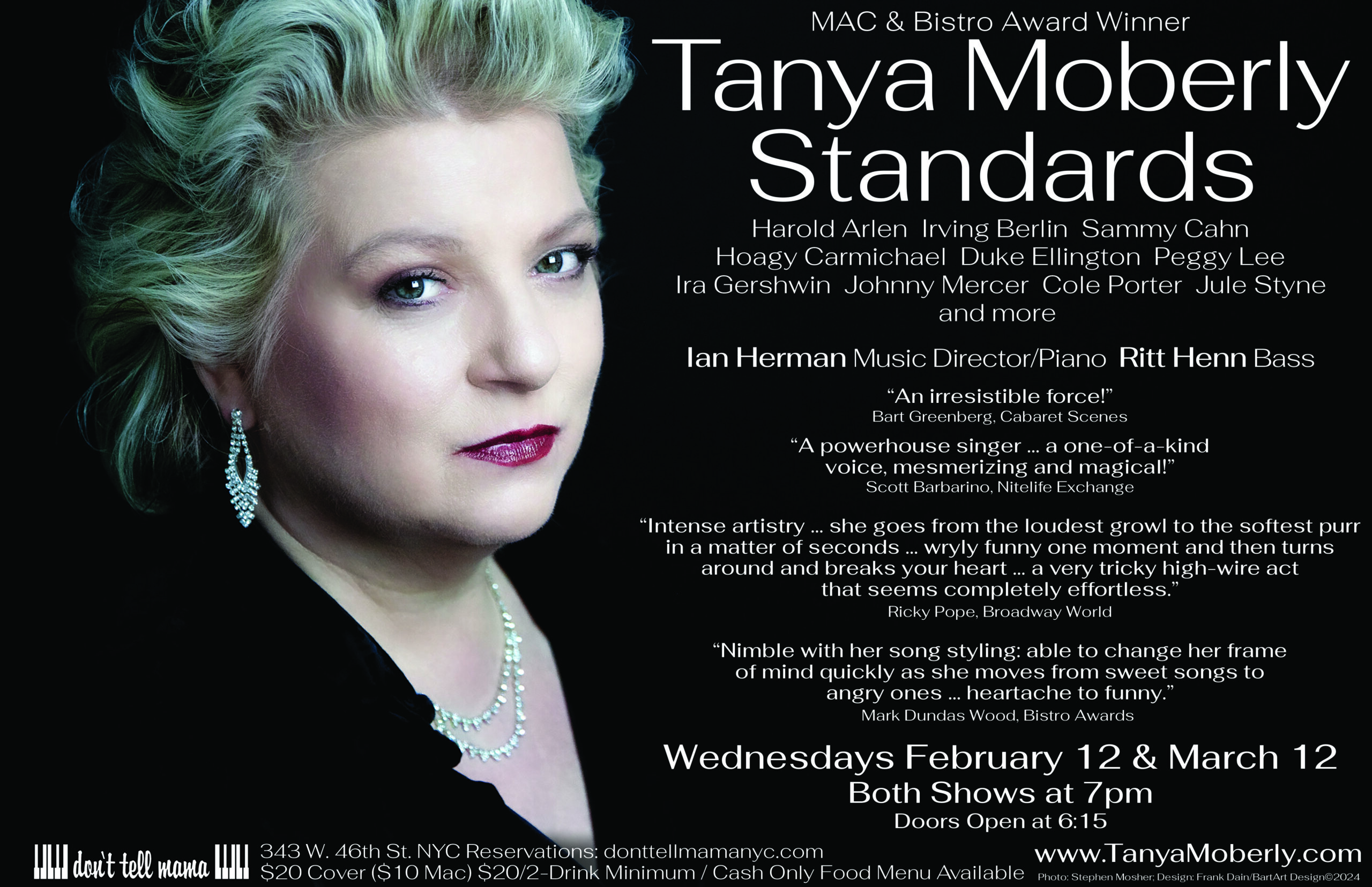 TANYA MOBERLY: STANDARDS MAC & BISTRO AWARD WINNER Featuring Songs by: Harold Arlen, Irving Berlin, Sammy Cahn, Hoagy Carmichael, Duke Ellington, Ira Gershwin, Peggy Lee, Johnny Mercer,  Cole Porter, Jule Styne and more... With: Ian Herman on Piano Ritt Henn on Bass $20 Cover and a $20 Minimum (must include 2 drinks) per person $10 Cover and […]