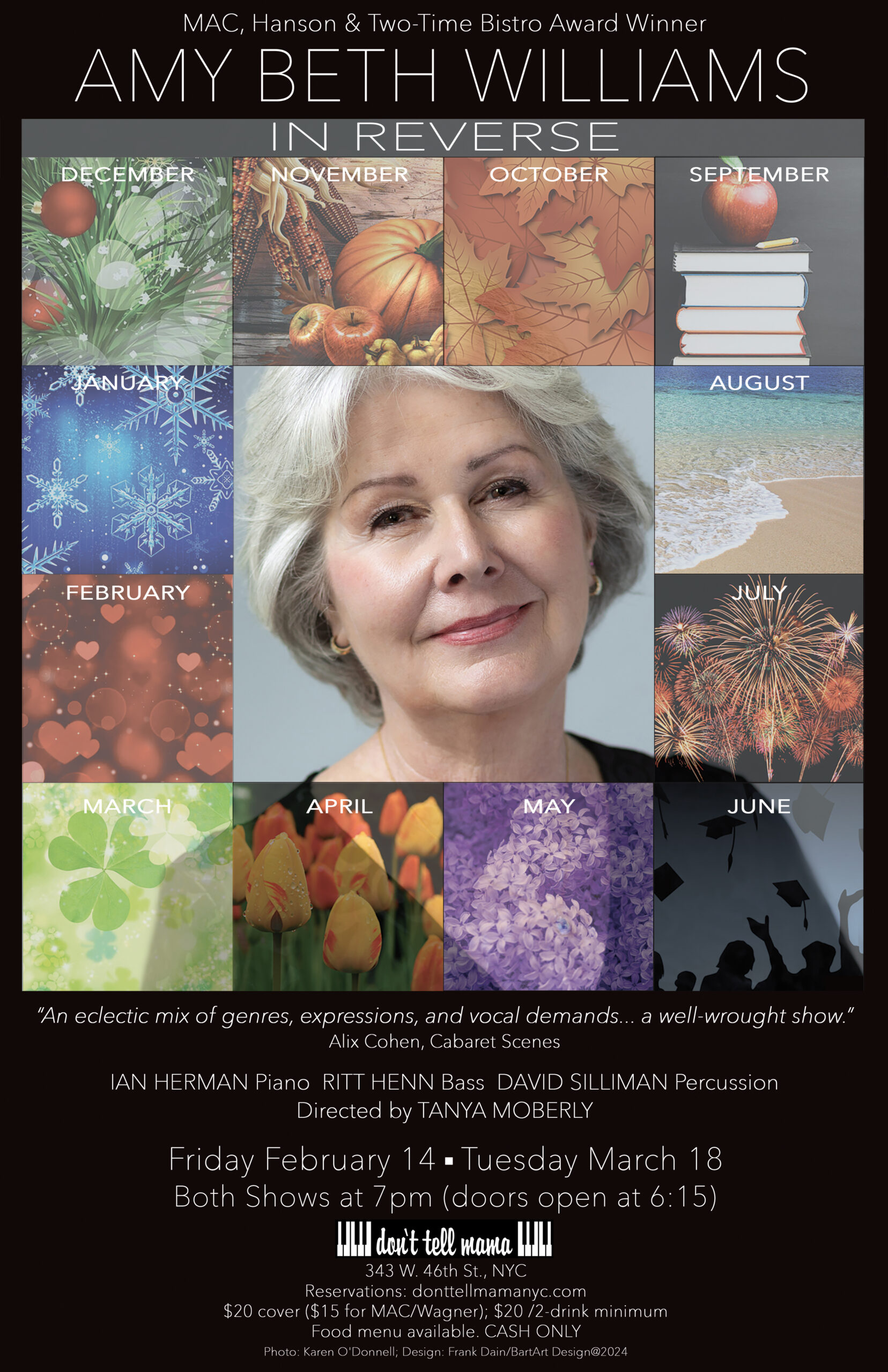 AMY BETH WILLIAMS: IN REVERSE MAC, Hanson & 2-Time Bistro Award Winner Featuring Songs by:Lynne Ahrens, Tori Amos, Leslie Bricusse, Kate Bush, Hoagy Carmichael, Stephen Flaherty, Jerry Herman, Adam Levine, Barry Manilow,Johnny Mercer, Anthony Newley, Sigmund Romberg, Paul Simon & Taylor Swift With: Ian Herman on Piano Ritt Henn on Bass David Silliman on Percussion Directed […]