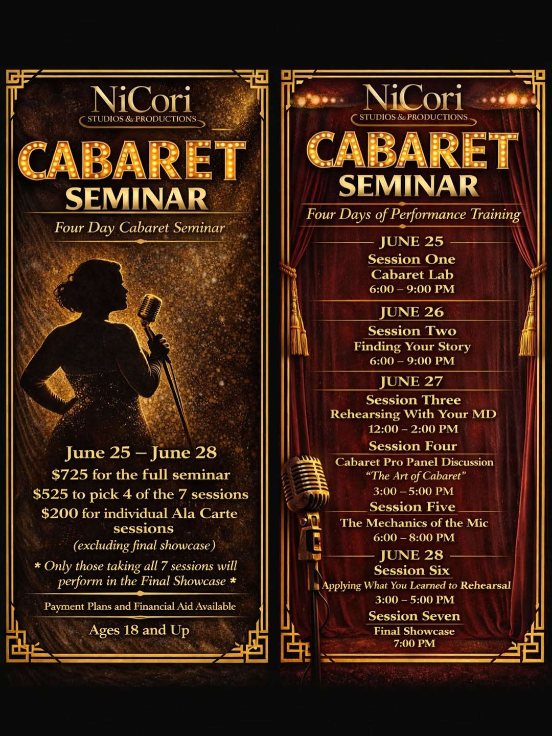 The NiCori Cabaret Seminar is an immersive four-day performance intensive designed for adult performers (ages 18+) looking to develop their voice, storytelling, and stage presence in a cabaret setting. Through a series […]